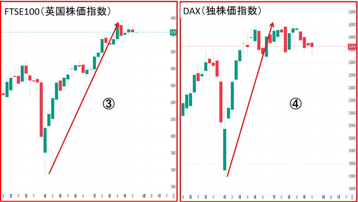 本日は、主力株指数と金、ビットコインが4月のトランプ関税ショックから何%上昇したかを見ていきたいと思います。