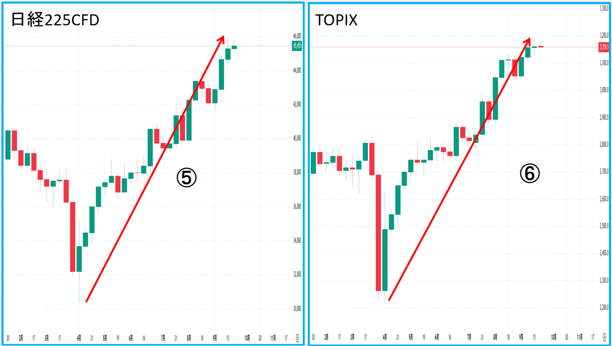 ⑤の上昇率は、51%。⑥の上昇率は、44%。